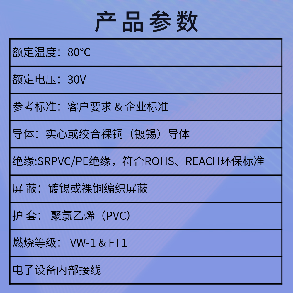 • 屏蔽:镀锡或裸铜编织屏蔽
