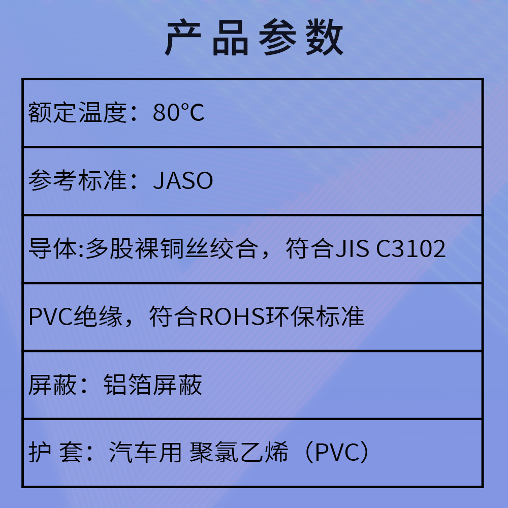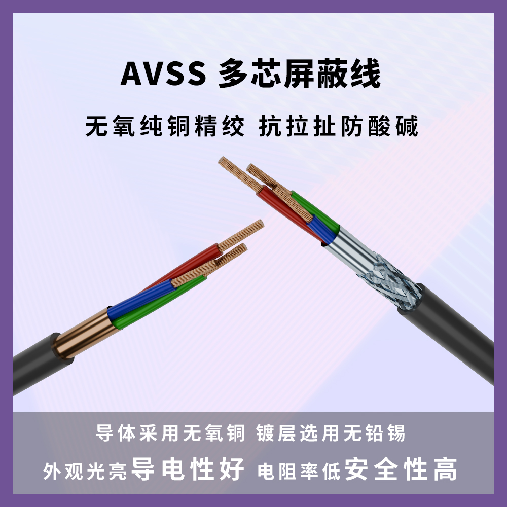 AVSS - AS 汽车线主要用于汽车内部电气系统。它能连接汽车的各种电器设备与仪表,如为发动机控制单元传输信号,实现对发动机的精准控制;为照明系统提供电力,确保车灯正常发光;还能用于连接车载音响、导航等电子设备,保障其稳定运行,是汽车电气系统中实现电流传输和信号传递的关键部件。